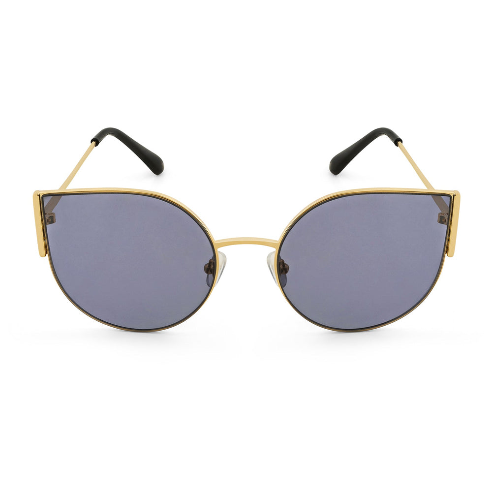Turn up the glam with the Vixen Round Cat-Eye Sunglasses. The sleek gold frames paired with grey lenses give you an ultra-chic, edgy vibe. Perfect for adding a touch of drama to any outfit.